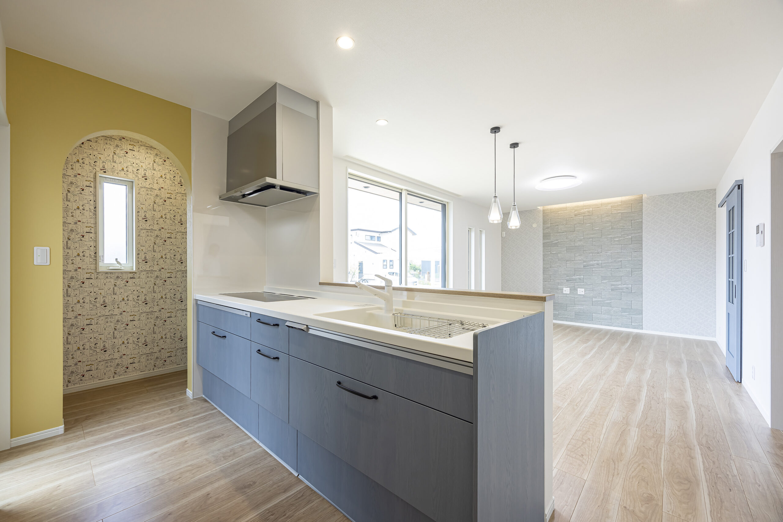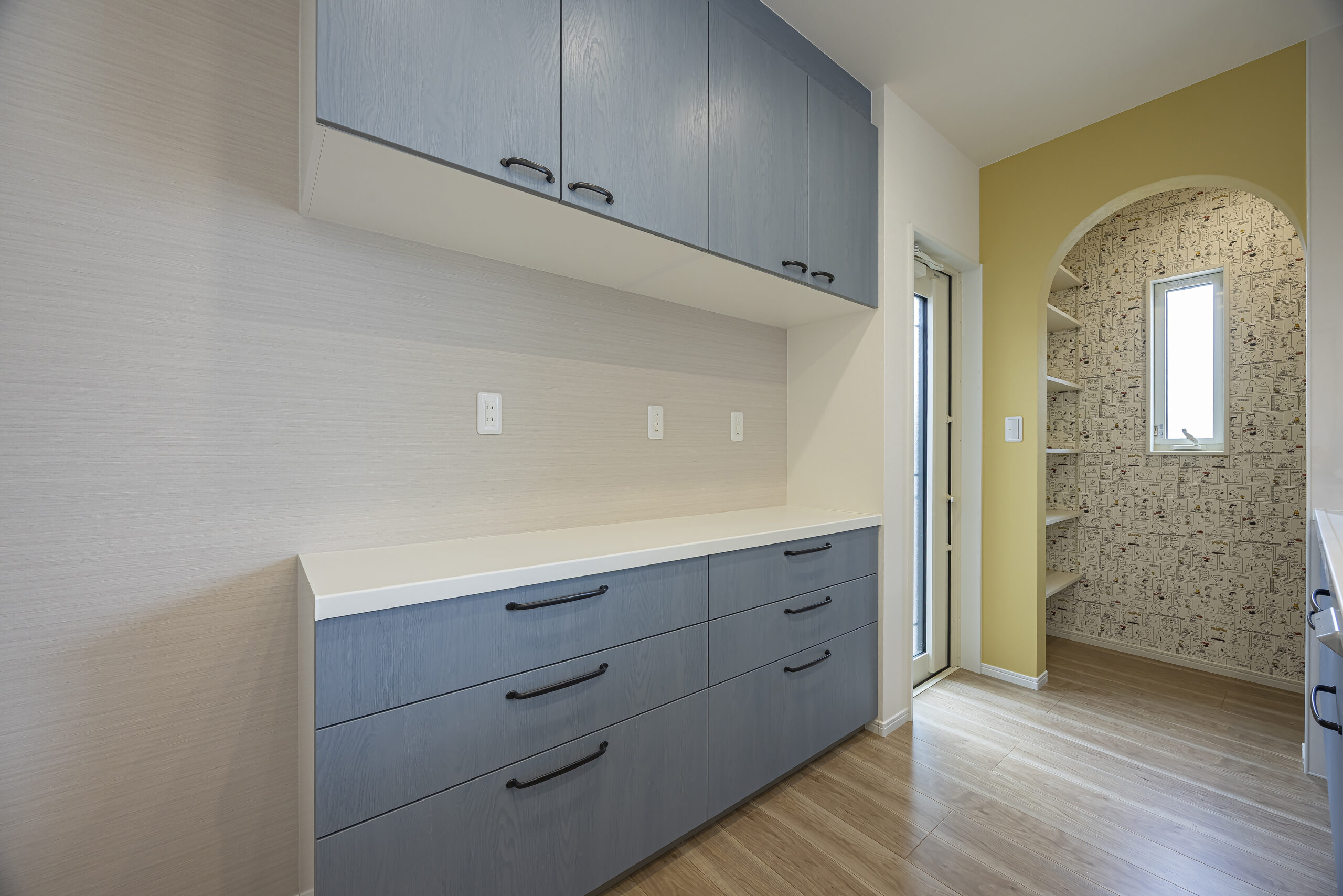 • 対面キッチンに続く、パントリー。奥様のご希望にあわせて可愛く仕上がりました。